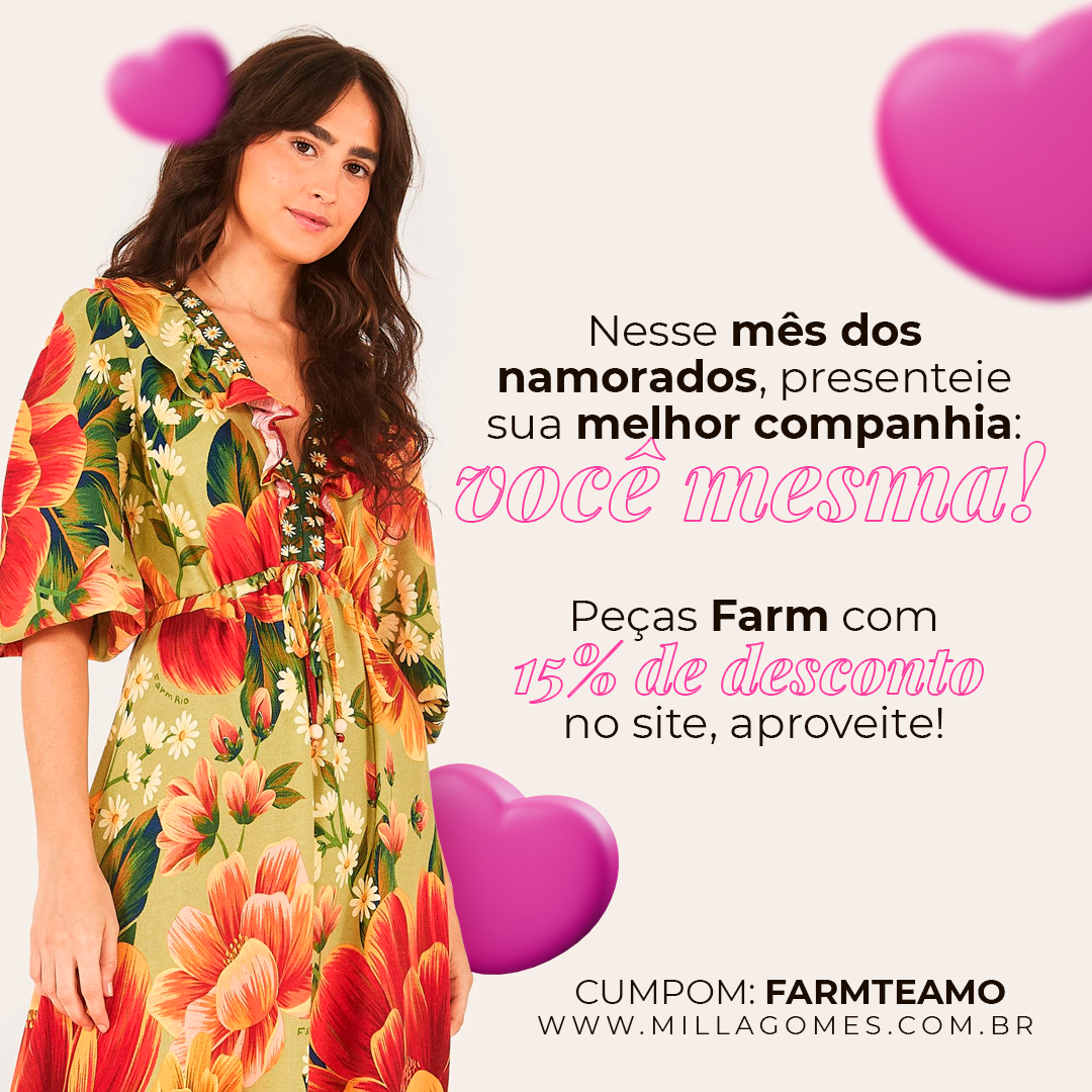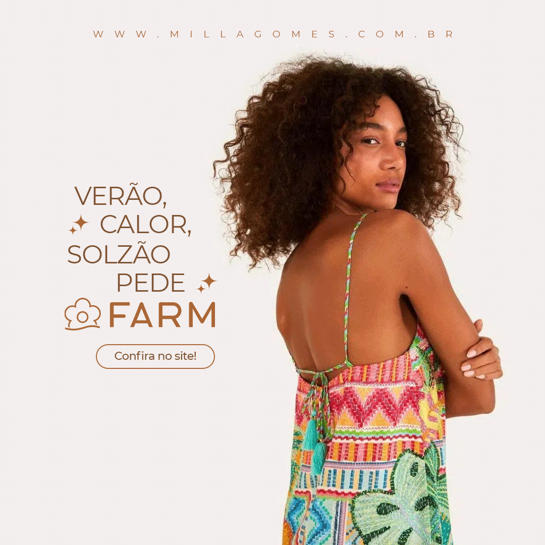 Criativos para campanhas no Meta de peças Farm na loja Milla Gomes